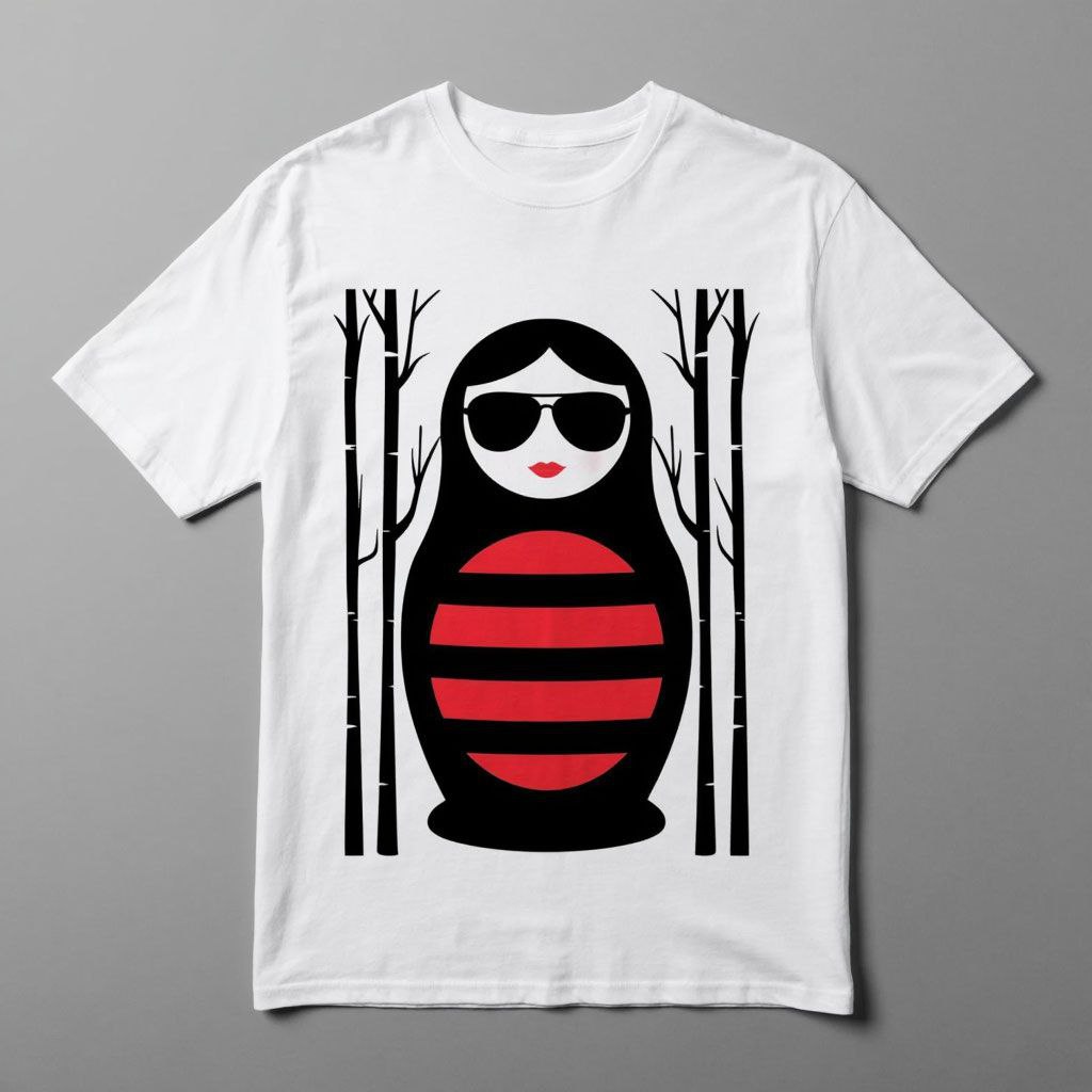 Белая футболка оверсайз с рисунком матрёшкой на груди — это стильная и выразительная вещь, которая может стать ярким акцентом в образе.