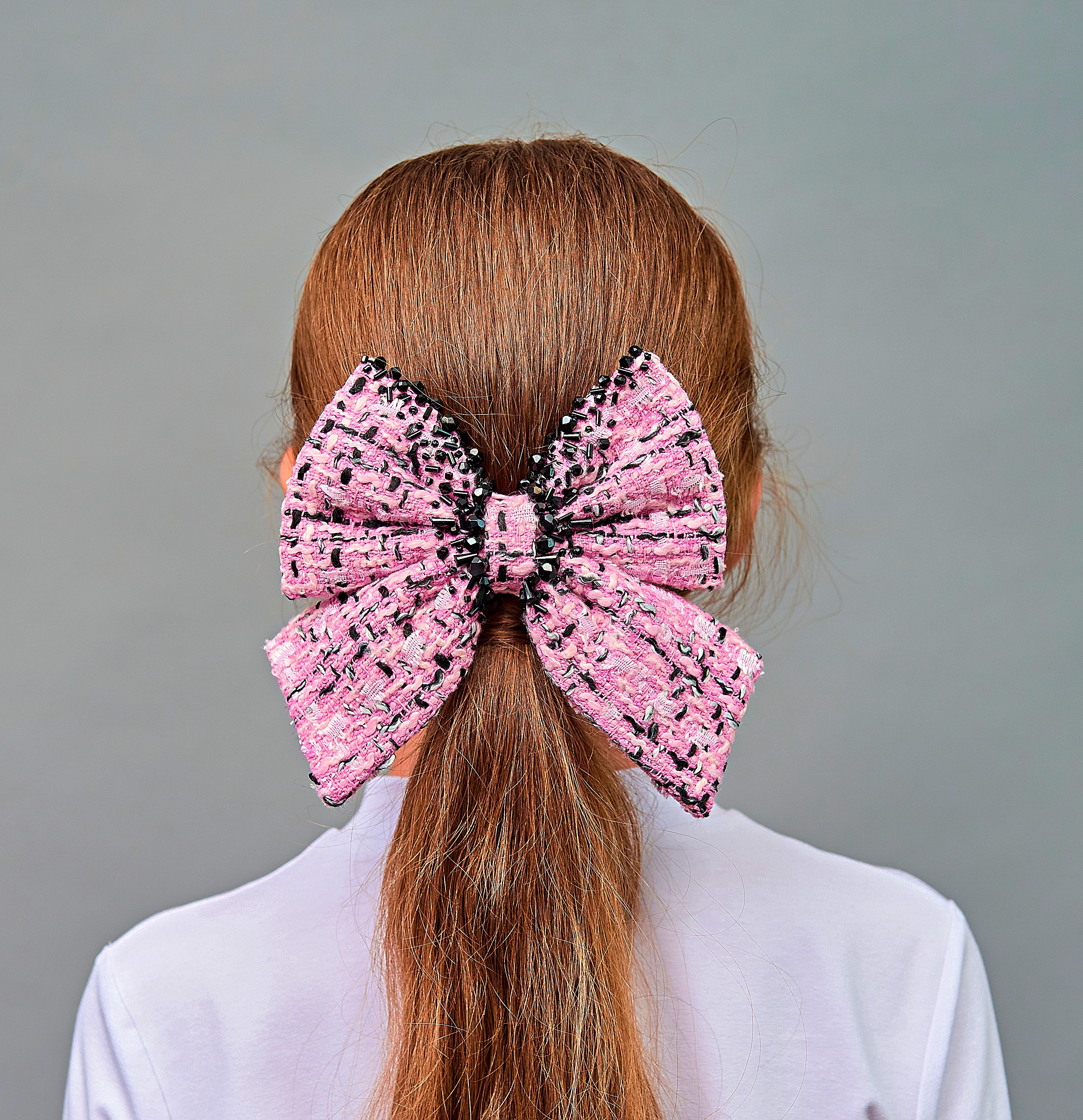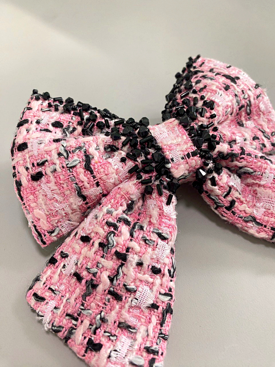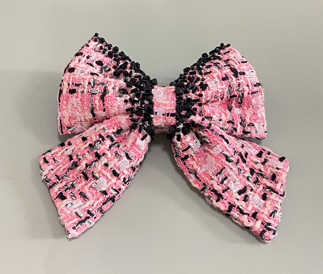 Заколка - бант из твидовой ткани с ручной вышивкой камнями и бисером - это изысканный аксессуар, который может стать прекрасным подарком или дополнением к вашему праздничному образу. Высокое качество работы заметно в каждой детали. Яркий, запоминающийся декор, который привлекает внимание и делает заколку по-настоящему эксклюзивной. Крепкая и надежная застёжка гарантирует прочность и долговечность изделия. Подходит для разных типов волос и причёсок. Такой аксессуар не только украсит волосы, но и подчеркнёт хороший вкус его обладательницы.